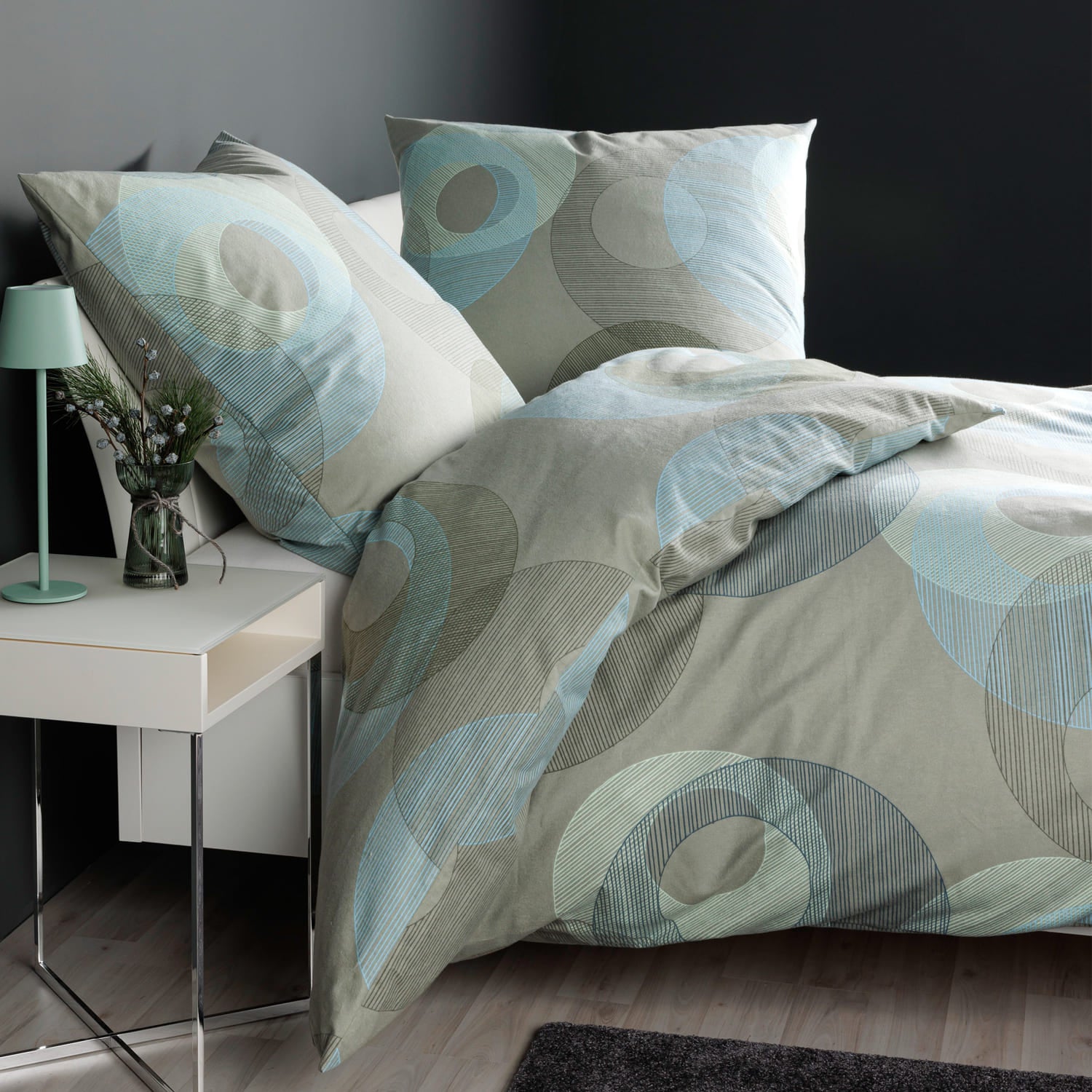 Sichern Sie sich den kuscheligen Biber-Luxus für die kalte Jahreszeit mit der Janine Feinbiber Bettwäsche DAVOS 65175 im attraktiven Farbton Salbeigrün. Als Spitzenprodukt der Janine Kollektion ist diese Bettwäsche aus 100% naturreiner Baumwolle gefertigt. Die hochwertige, feingewebte Biber-Qualität ist bekannt für ihren kuschelweichen Rauhflor, der Wärme hervorragend speichert, ohne die Atmungsaktivität zu beeinträchtigen. So genießen Sie stets ein trockenes und wohlig warmes Schlafklima. Das Dessin präsentiert sich in einem ansprechenden, modernen Kreis-Muster (Grafik-Design), das Ihr Bett zum Blickfang macht. Großer Vorteil in der Anwendung ist die bügelfreie Beschaffenheit und der praktische Marken-Reißverschluss, die eine besonders leichte und schnelle Pflege ermöglichen (waschbar bis 60°C, trocknergeeignet). Durch die dauerhafte Formstabilität und die Öko-Tex Zertifizierung erfüllt diese Bettwäsche höchste Ansprüche an Komfort, Qualität und Nachhaltigkeit.