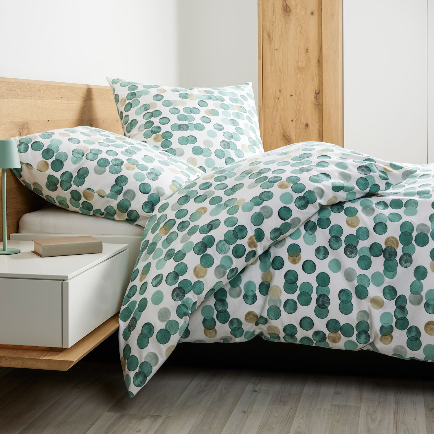 Die Janine Feinbiber Bettwäsche DAVOS 65176 in Waldgrün ist die perfekte Lösung für alle, die in der kalten Jahreszeit nicht auf Gemütlichkeit und Stil verzichten möchten. Als erstklassiges Feinbiber-Produkt wird sie aus 100% reiner Baumwolle hergestellt. Der Stoff ist durch den sanft angerauten Flor besonders kuschelweich und bietet ein sehr gutes Wärmespeichervermögen, ohne dabei an Atmungsaktivität einzubüßen. Das macht sie zur idealen, temperaturausgleichenden Winterbettwäsche. Das Dessin besticht durch ein charmantes, freches Tupfen-Design auf hellem Grund, wobei die Aquarellpunkte in verschiedenen Grün- und Gelbschattierungen eine lebendige und doch ruhige Optik erzeugen. Die Bettwäsche ist bügelfrei und dauerhaft formstabil, selbst nach häufigem Waschen bei 60°C. Dank des hochwertigen Marken-Reißverschlusses ist das Beziehen der Garnitur besonders komfortabel. Sie ist zudem schadstoffgeprüft (Öko-Tex Standard 100) und erfüllt höchste Ansprüche an Qualität und Langlebigkeit.