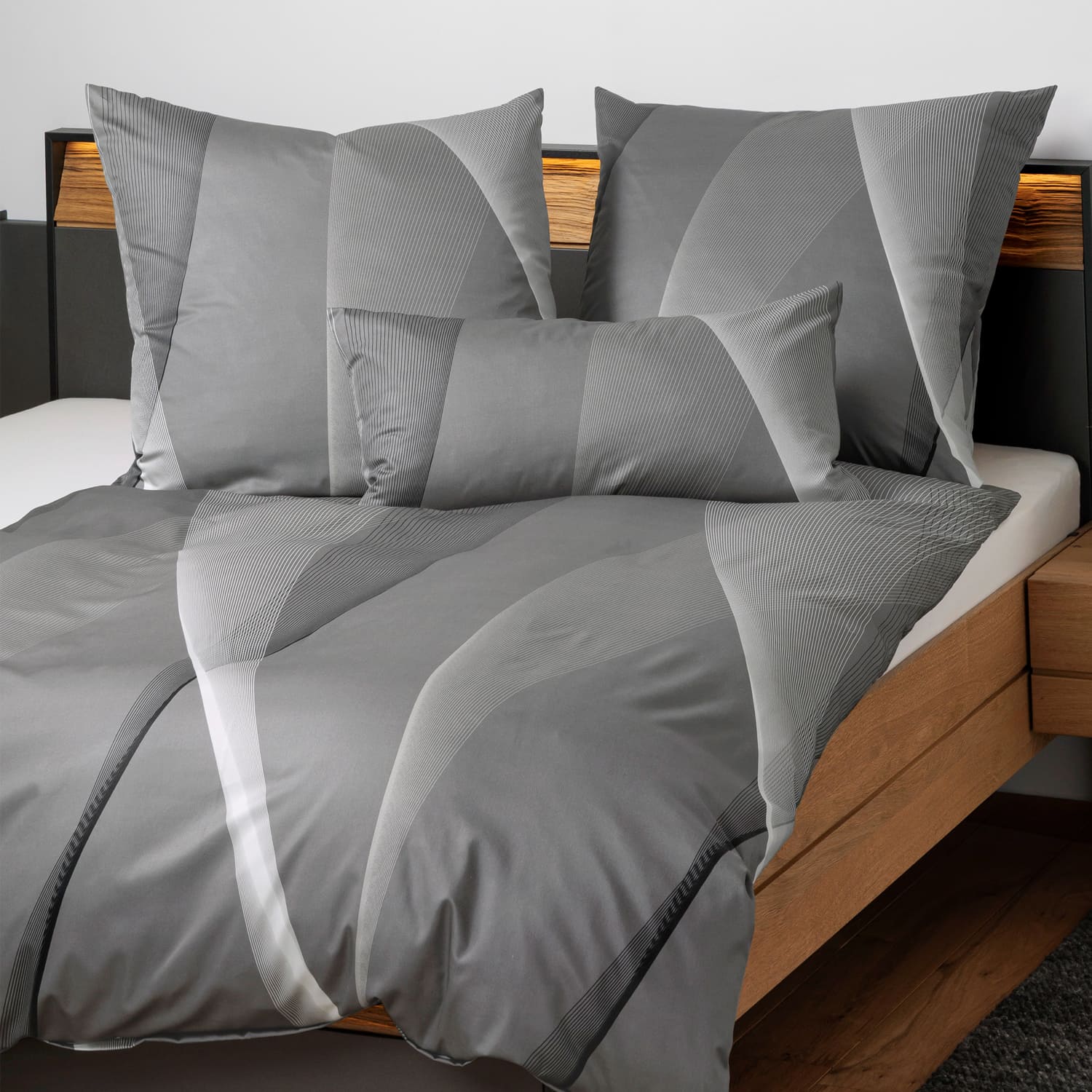 Sichern Sie sich die Janine Mako-Satin Bettwäsche MILANO 45115 und genießen Sie ein Schlaferlebnis der Extraklasse. Das moderne, grafische Dessin mit feinen, schwungvollen Linien in Grau und Taupe schafft eine beruhigende, stilvolle Optik. Diese Bettwäsche ist ein Spitzenprodukt: Gefertigt in dichter Webkonstruktion (mind. 80 Fäden/cm²) aus 100% naturreiner, supergekämmter Mako-Baumwolle. Dank der Hochveredelung (Seidenfinish) überzeugt der Satin durch seinen langlebigen Glanz und seine herausragende Hautsympathie. Als Öko-Tex zertifiziertes Produkt erfüllt es höchste ökologische Standards. Die atmungsaktive und feuchtigkeitsregulierende Qualität sorgt für ein stets angenehmes, ideales Schlafklima, das auch für Wasserbetten geeignet ist. Die praktische Atelierkonfektion und der verdeckte Qualitätsreißverschluss unterstreichen die Langlebigkeit und die einfache Pflege (60°C waschbar, trocknergeeignet, bügelleicht).