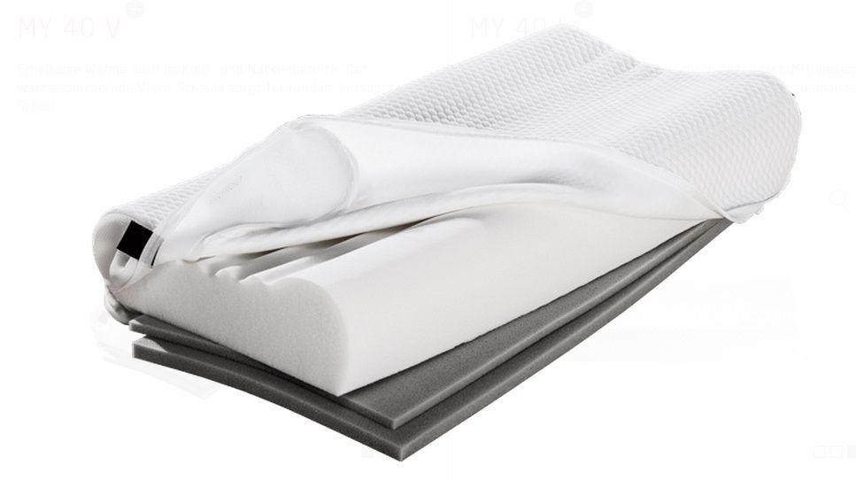 Eine Besonderheit des MY 40 V ist die Möglichkeit, die Höhe individuell zu variieren, um das Kissen optimal auf Ihre Schulterbreite, Matratze und bevorzugte Schlafposition einzustellen. So ist ein ergonomisch korrekter Liegekomfort für Seiten-, Rücken- und Bauchschläfer möglich.